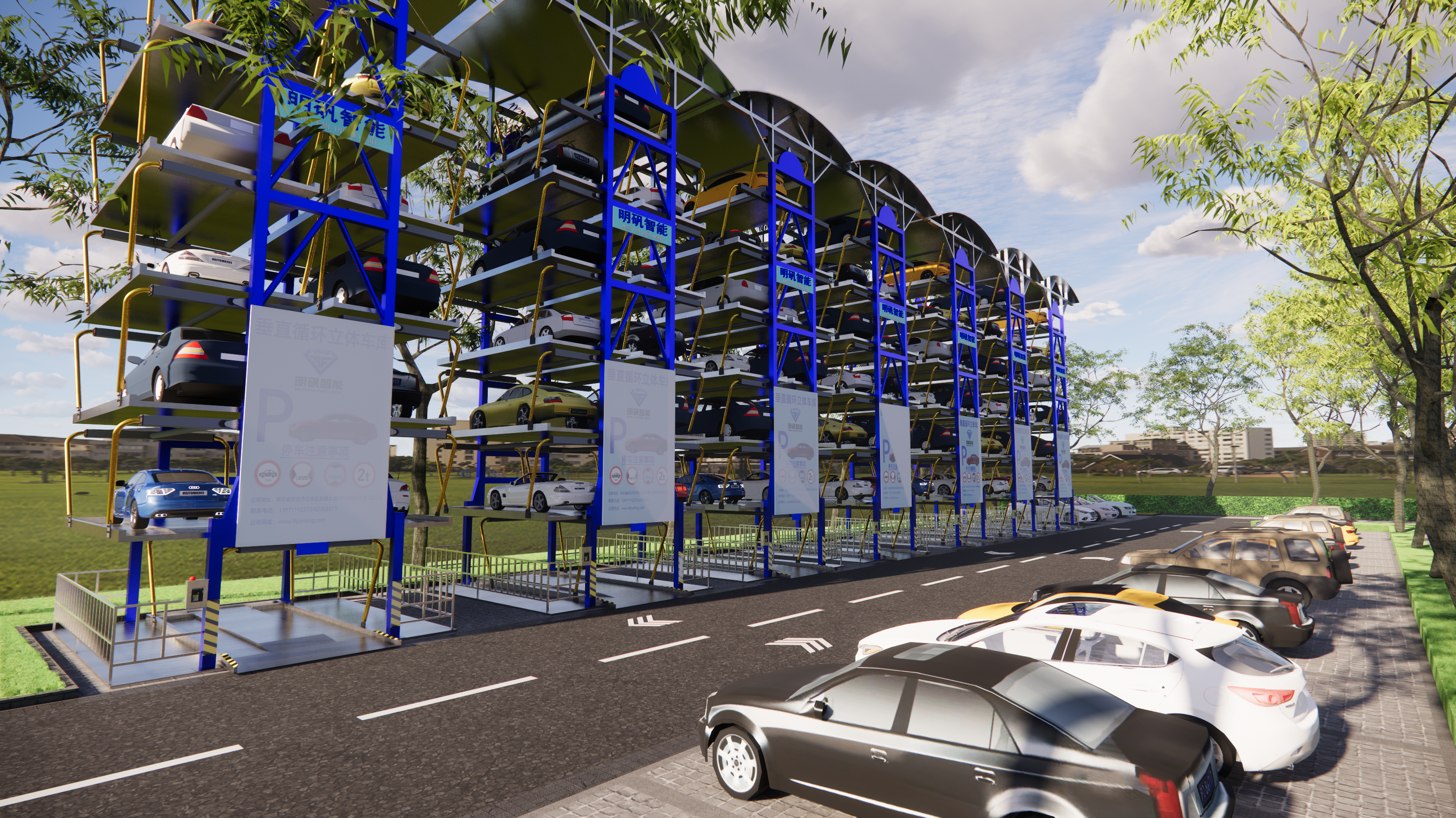 讓汽車“坐摩天輪”停車! 一、省地、能裝、靈活! 它的優(yōu)勢(shì)太戳痛點(diǎn) 比起傳統(tǒng)停車場(chǎng)“占地大、容量小”的弊端,這款智能停車設(shè)備簡(jiǎn)直是“空間魔術(shù)師”,核心優(yōu)勢(shì)一戳一個(gè)準(zhǔn): 1. 省地!小空間裝下“大容量” 寸土寸金的時(shí)代,它把土地利用率拉滿——僅需2個(gè)傳統(tǒng)車位的面積,就能安裝一組設(shè)備,容量直接提升5-8倍!哪怕是狹窄的街角、小區(qū)空地,都能“見縫插針”安裝,再也不用為擴(kuò)建停車場(chǎng)“拆東補(bǔ)西”。 2. 高效!建得快、用得更快 傳統(tǒng)停車場(chǎng)動(dòng)輒數(shù)月工期,它“工廠化預(yù)制+現(xiàn)場(chǎng)快速組裝”,建設(shè)周期縮短一半以上。存取車更是“一鍵搞定”,不用再浪費(fèi)時(shí)間找位、倒車,效率直接翻倍。 3. 百搭!全場(chǎng)景都能“量身定制” 無論是老舊小區(qū)、產(chǎn)業(yè)園區(qū),還是醫(yī)院、商場(chǎng)、學(xué)校,它都能適配:可單組獨(dú)立使用,也能多組、多排組合,根據(jù)場(chǎng)地大小、使用需求靈活定制,哪里缺車位就“補(bǔ)”哪里。 二、汽車“坐摩天輪”? 原理超簡(jiǎn)單! 很多人好奇:它怎么讓汽車“上上下下”?其實(shí)原理像極了我們玩的摩天輪—— 設(shè)備通過鋼結(jié)構(gòu)框架支撐,載車板像“摩天輪座艙”一樣循環(huán)轉(zhuǎn)動(dòng)。當(dāng)車輛停入底層載車板后,設(shè)備自動(dòng)啟動(dòng)循環(huán),把車輛運(yùn)至空中空位,同時(shí)將空的載車板轉(zhuǎn)到底層,等待下一輛車,整個(gè)過程全自動(dòng)運(yùn)行,無需人工操作。 三、存取車3步搞定! 老人也能輕松用 不用記復(fù)雜操作,全程“傻瓜式”流程,1分鐘內(nèi)就能完成存取車: 1. 存車:開車到設(shè)備前1米,車庫門自動(dòng)開啟 → 車輛駛?cè)胼d車板停穩(wěn),司機(jī)從人行通道離開 → 在液晶屏輸入車牌號(hào),點(diǎn)擊“存車”,設(shè)備自動(dòng)運(yùn)轉(zhuǎn)存車; 2. 取車:在液晶屏輸入車牌號(hào),點(diǎn)擊“取車” → 設(shè)備自動(dòng)將車輛轉(zhuǎn)至底層,車庫門開啟 → 直接開車離開。 四、多重防護(hù)“鎖”安全! 車輛停放超放心 不少人擔(dān)心“空中停車”的安全性?這款設(shè)備早把防護(hù)拉滿: - 硬件防護(hù):緊急停止開關(guān)、車輛超長(zhǎng)超高檢測(cè)器、阻車裝置、人車誤入報(bào)警器等5大防護(hù)裝置,從源頭杜絕風(fēng)險(xiǎn); - 智能監(jiān)測(cè):多重傳感器24小時(shí)實(shí)時(shí)監(jiān)控設(shè)備運(yùn)行狀態(tài),一旦發(fā)現(xiàn)異常立即自動(dòng)停機(jī),給車輛和人員“雙保險(xiǎn)”。 MING FAN INTELLIGENT 從老舊小區(qū)改造到商業(yè)綜合體配套,從醫(yī)院停車場(chǎng)升級(jí)到產(chǎn)業(yè)園區(qū)規(guī)劃,這款“摩天輪式”智能停車設(shè)備,正用“省地、高效、靈活”的優(yōu)勢(shì),破解城市“停車難”的痛點(diǎn)! 如果你的小區(qū)、企業(yè)正被停車問題困擾,歡迎隨時(shí)咨詢了解定制方案~